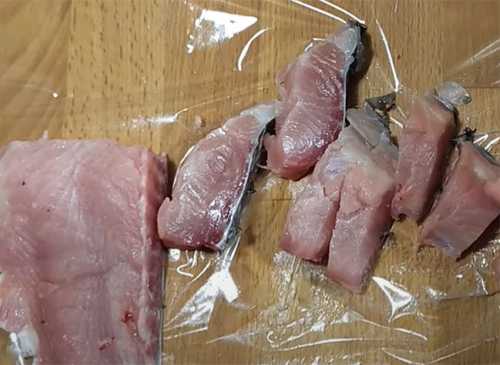 Затем подготовленную тушку режим на порционные кусочки толщиной около 1 см.