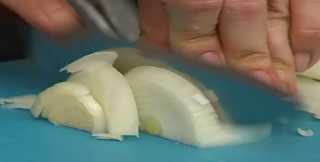 Лук очищаем от шелухи, промываем водой, и нарезаем средними полукольцами.