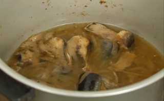 Селёдка, маринованная в томате и соевом соусе.
