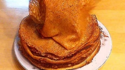 Внимание: перед каждой выпечкой блинов сковородку нужно смазывать маслом. Можно наколоть на вилку кусочек сала и каждый раз им протирать сковородку, также перед каждой заливкой тесто нужно перемешивать в миске. В качестве помазка для растительного масла можно использовать кусочек ткани, обёрнутый марлей, половинку небольшой луковицы или кружочек сырого картофеля: его накалывают на вилку, опускают в растительное масло и быстрыми круговыми движениями протирают разогретую сковороду.