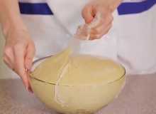 Добавляем порциями размягченное масло, при этом тесто каждый раз вымешиваем. С начало тесто будет липнуть к столу, но в конце замеса оно приобретет гладкую текстуру и перестанет прилипать к рукам и столу.