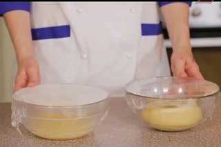 Готовое тесто и соус накрываем пленкой – соус ставим в холодильник – пусть охлаждается и ждет своего времени, а тесто оставляем при комнатной температуре для расстойки на 90 минут.