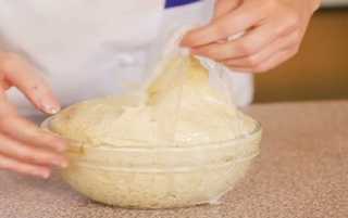 Опять перекладываем в миску, накрываем плёнкой и оставляем на 1 час 30 минут – пусть поднимается.