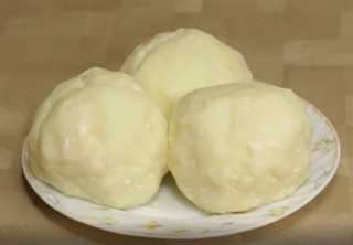 В миску выкладываем: картофель, сыр, измельченный лук, массу солим и перемешиваем. Полученную массу делим на три части, которые в свою очередь скатываем в шары.