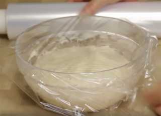 Подошедшее тесто делим на три равные части, получается три части теста и три части начинки. Тесто будет очень нежное, но это не должно Вас смущать.