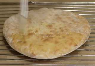 Готовый пирог, выкладываем на решётку, смазываем растопленным маслом, и так формируем все лепёшки.