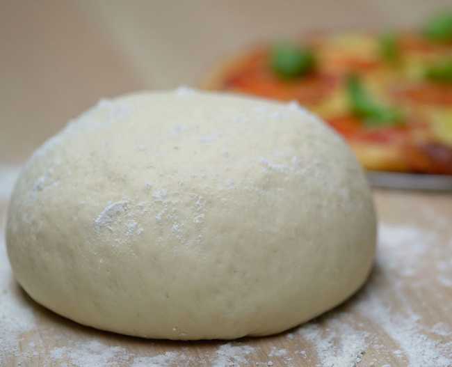 Тесто подошло, отрываем от него небольшой кусочек, и формируем жгутик, раскатываем тесто в пласт толщиной в 0,7 мм, выкладываем в противень, смазываем края желтком и укладываем жгутик, формируя бортик у пиццы.