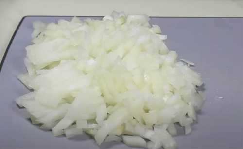 Репчатый лук, освобождаем от шелухи, шинкуем средними кубиками.