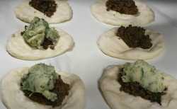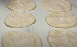 Стол слегка смазываем растительным маслом, выкладываем заготовки верхней частью вниз на стол, растягиваем руками, но не тонко.