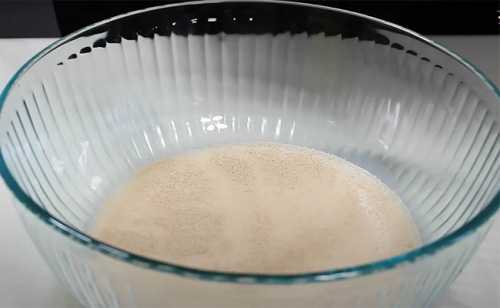 В миску выливаем тёплое молоко (150гр), добавляем 1 ч. ложку сахар – песок, дрожжи – перемешиваем и даём подойти в течении 5-15 минут в тёплом месте. Когда поднимется шапочка – значит жидкость готова к использованию. Чтобы дрожжи хорошо работали, нужно взять свежий продукт.