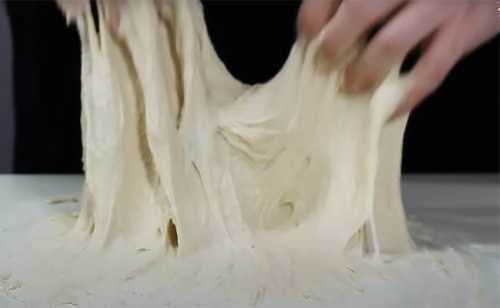 Стол смазываем растительным маслом (1 ст. ложка), выкладываем тесто, смазаваем руки маслом и начинаем вымешивать в течение 7-10 минут, пусть Вас не смущает, что тесто такой консистенции – так должно быть.