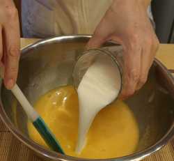 Выливаем теплый кефир – перемешиваем и пока отставляем миску в сторону.