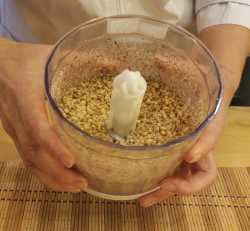Грецкие орехи, можно предварительно их обжарить и остудить, перекладываем в чашу блендера и измельчаем до средней фракции.