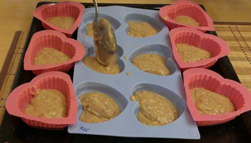 Тесто начало пузыриться, пора перекладывать их в формочки.