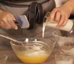Во взбитые яйца с маслом добавляем частями муку, молоко – хорошо перемешиваем и продолжаем процедуру пока все ингредиенты не закончатся.