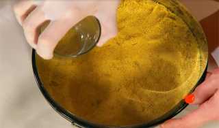 Выкладываем в форму печенье и слегка его утрамбовываем при помощи обычного стакана, толщина слоя должна быть примерно в 1 см.