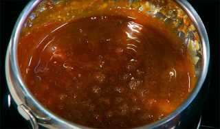 Пока тыква вариться, приготовим карамель. Для этого, в кастрюлю высыпаем сахар, добавляем воду, перемешиваем и варим до светло коричневого цвета, при этом ложкой массу нельзя перемешивать, т.к. наступит процесс кристаллизации. Кастрюлю нужно время от времени наклонять в разные стороны – как бы перемешивая массу.