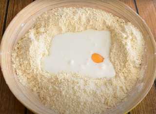 Добавляем: сахар, яйцо, кефир – перемешиваем и вымешиваем до эластичной консистенции. Если тесто получится жидковатое, то можно добавить муку.