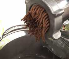 Затем ингредиенты (печень, грудинку, чеснок и лук) вынимаем, остужаем до тёплого состояния и пропускаем два раза через мясорубку или измельчаем при помощи блендера.